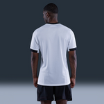 A versão branca mantém a elegância clássica que faz parte da tradição vascaína, agora realçada pela mesma faixa diagonal com textura inspirada no mar. Os contrastes em preto na gola e nos punhos elevam o visual, criando um uniforme limpo, sofisticado e fiel à identidade cruzmaltina.