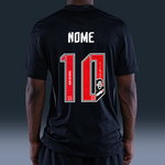 Com base predominantemente preta, a camisa titular presta homenagem às raízes históricas e à mística única do Vasco. A tradicional faixa diagonal branca foi reinterpretada com grafismos inspirados no movimento da água e nas ondas, evocando as origens marítimas do clube e o espírito de navegação que fez do Vasco um símbolo de superação.